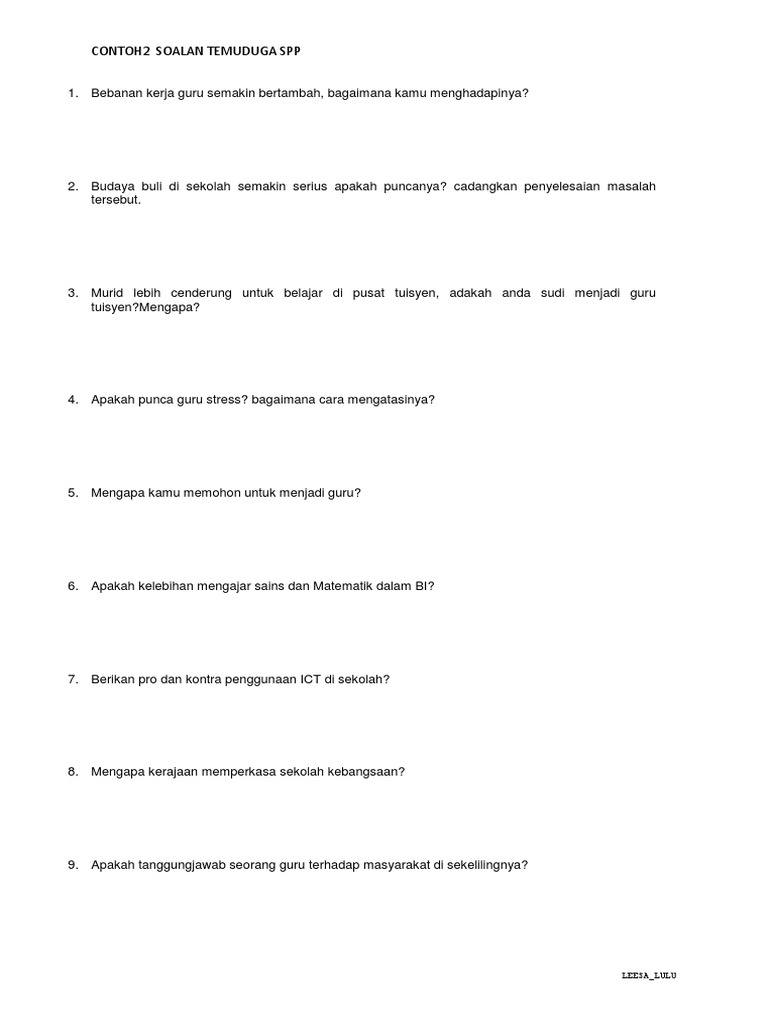Contoh Soalan Spp By Ra_Lilia63 04 Jun, 2022 Post a Comment Soalan Famous Spp Pdf Contoh Soalan Temuduga Guru Spp Pegawai Pendidikan Dg41 One Off Soalan Famous Temuduga Spp Soalan Spp Pdf Contoh Soalan Temuduga Spp Ppps41 Pdf Share No comments for "Contoh Soalan Spp"